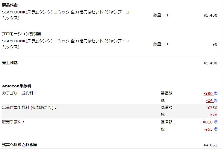 最近スラムダンクを5400円で売りましたので、今回は5400円で計算しています。