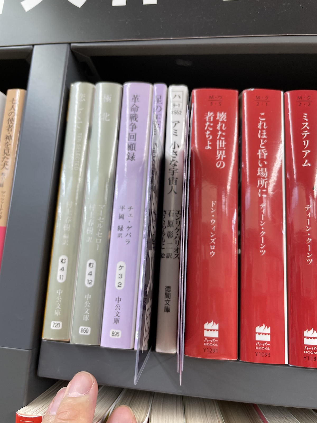 これは棚に刺さっていたのではなくて、レジ後ろの赤カートに載っていたものです。